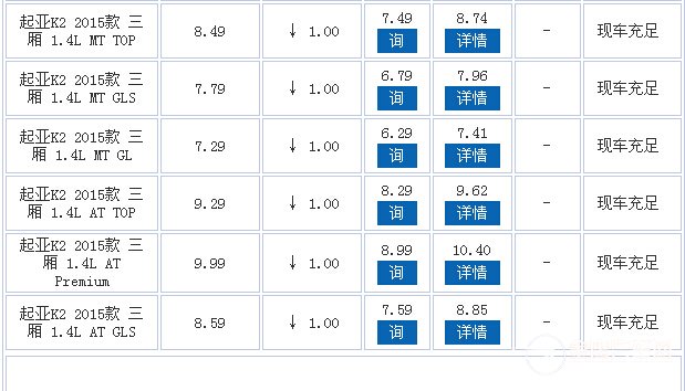 近日,本店内起亚K2现车销售,颜色可选,目前购车部分车型可优惠1.00万元,感兴趣的朋友可以到店咨询购买,详情见下表: