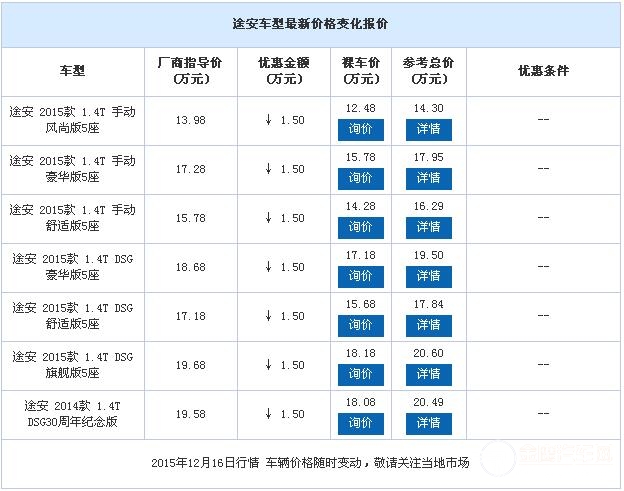 近日,申湘上海大众星沙众兴店内途安现车销售,颜色可选,目前购车部分车型可优惠1.50万元送装饰,感兴趣的朋友可以到店咨询购买,详情见下表: