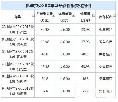 车展优惠来袭 凯迪拉克SRX钜惠