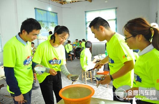 一辆好车,一路好的风景,怎能少了地道的美食。中午,青春伙伴品尝了极具特色的农家饭和花溪擂茶。据史料记载,中国最古老的饮茶方式是“羹饮”,就是把茶煮了喝,花岩溪的擂茶起源于东汉,至今已经2000多年的历史。青春伙伴边吃边喝、边娱边乐,在这青山绿水间,心旷神怡,情趣盎然。