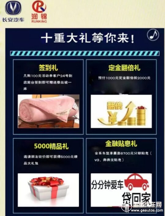 这么多的优惠,是不是很清凉? 不仅如此,我们还有其他大礼等着你 不信你往下看 6.24长安润锦厂家千人直销会-湖南站 年度超级劲爆团购最大优惠巅峰来袭! 你敢来 我敢送!