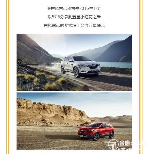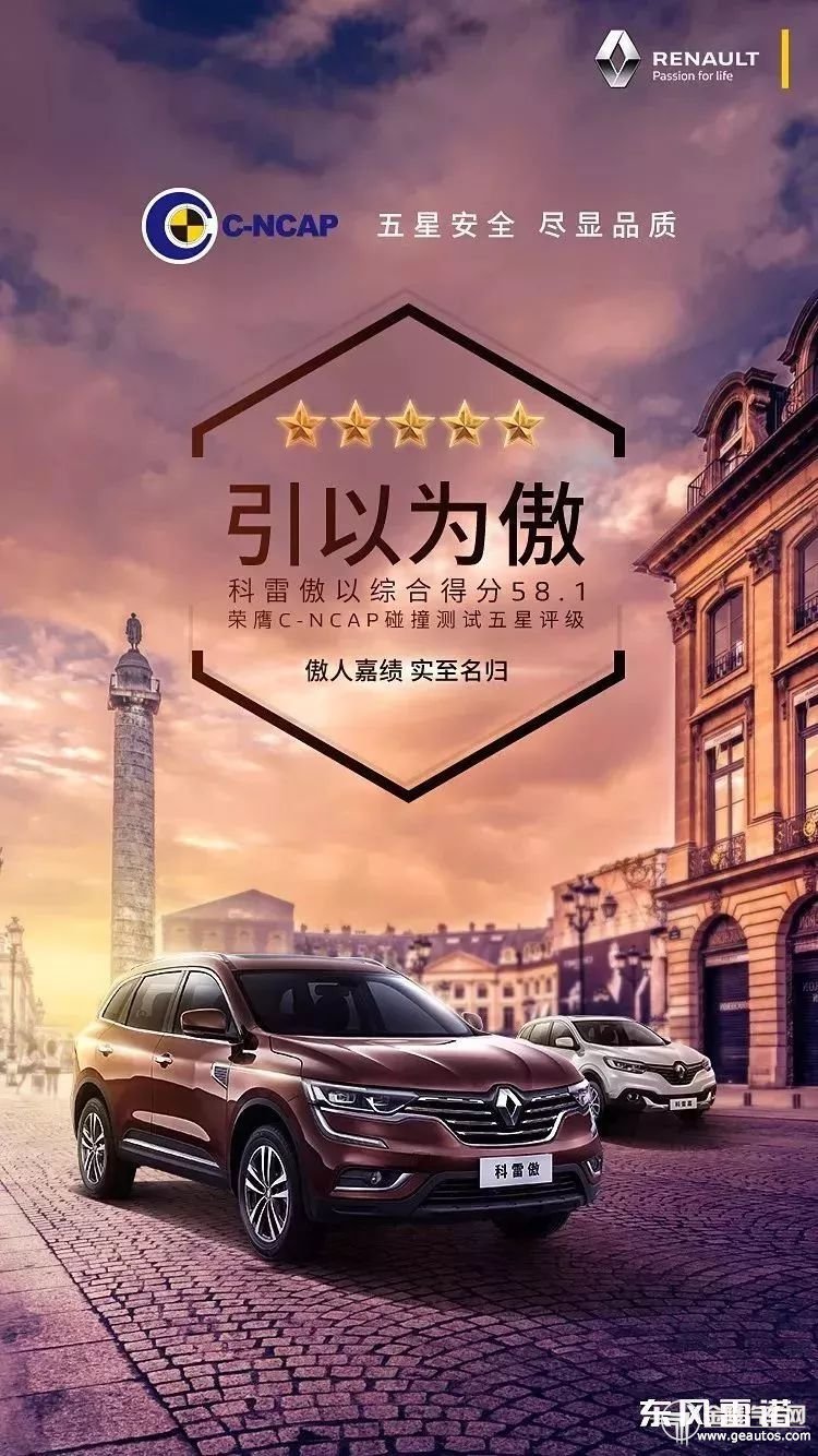 “双五星”降临!科雷傲获C-NCAP碰撞测试五星评级!