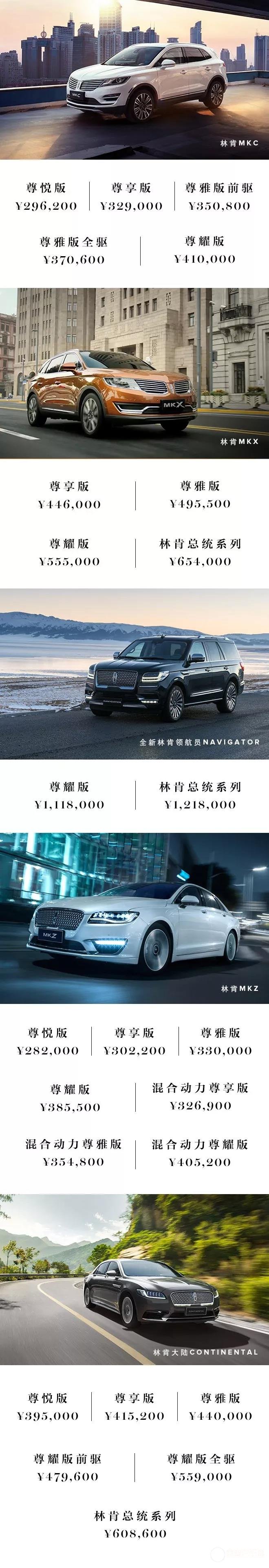 林肯调整在华全系车型市场指导价,
