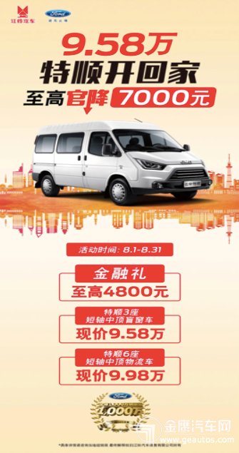 “惠动”8月 江铃特顺夏日冰点价,至高官降7000元!