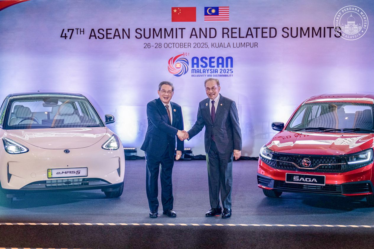 在东盟领导人系列峰会期间,国务院总理李强与马来西亚总理安瓦尔,一同参观吉利和宝腾的创新成果,全新宝腾Saga,和宝腾e.MAS 5的首次公开展示,其中,宝腾e.MAS 5是马来西亚首款面向大众市场的纯电动汽车。安瓦尔表示,这两款车型,是马来西亚与中国亲密友谊的有力象征,也是两国共同致力深化汽车发展,和技术创新领域战略合作的承诺体现。反映出马来西亚和中国,不仅决心在汽车行业取得进步,还致力于在数字经济,绿色能源和智能化交通 。