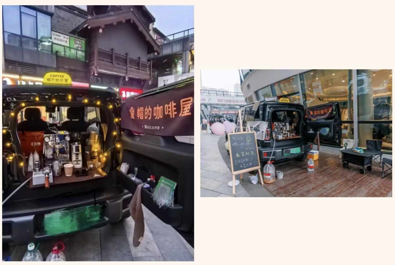 宝骏&帽的咖啡馆 从汽车行业的销售专家到创业移动咖啡车,从MINI换成宝骏悦也。这个瞬息万变的时代,每天都在更新。 小姐姐叫帽,所以给自己的移动咖啡车叫做【帽的咖啡屋】,帽从事汽车行业10来年,从宝马到mini到理想汽车,热爱咖啡也有六年时间了,平时休息日喜欢探店-咖啡。清晨六点,城市还在沉睡,她打开车的后尾箱,清晨的第一杯咖啡是在调试研磨度,看着磨好的粉放在手柄上,萃取着36克的咖啡液,那温热的咖啡落入她的杯中,满足又温暖……五年前,如果有人告诉她,她这么一个在汽车行业摸爬滚打十年的汽车人会开着改装好的宝骏咖啡车在各个城市角落出没,她一定会认为那个她疯了。但是现在的她却很享受当下!自由而随性,帽和她选的宝骏悦也一样是位酷飒又可爱的小姐姐,最重要的是她亲自磨泡的咖啡很好喝!