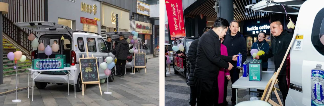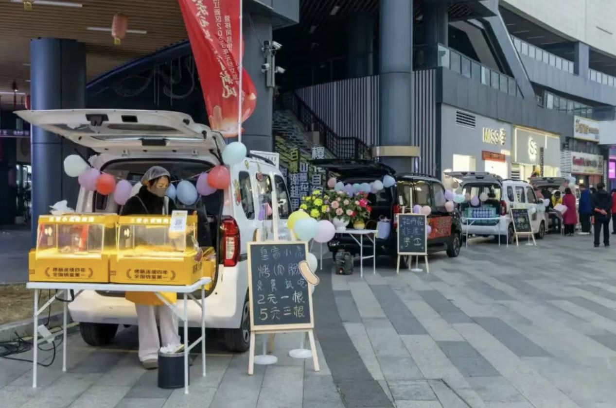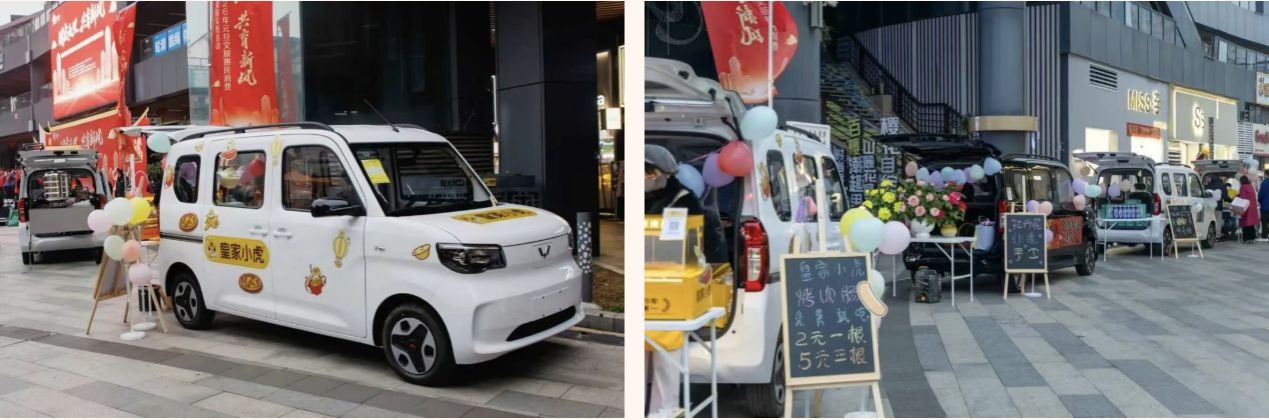 五菱&皇家小虎 五菱之光EV是车尾箱创业的神器;而皇家小虎是速冻小吃大王,速冻食品全网销量第一,累计服务超亿次家庭用户,年销售额超30亿,烤肠、蛋挞连续四年全国销售第一,有自己的超级工厂,品质更可靠,标准化生产,品控更有保障。活动期间品牌还推出了免费试吃香肠的环节哦,是整个元旦销售的人气王!
