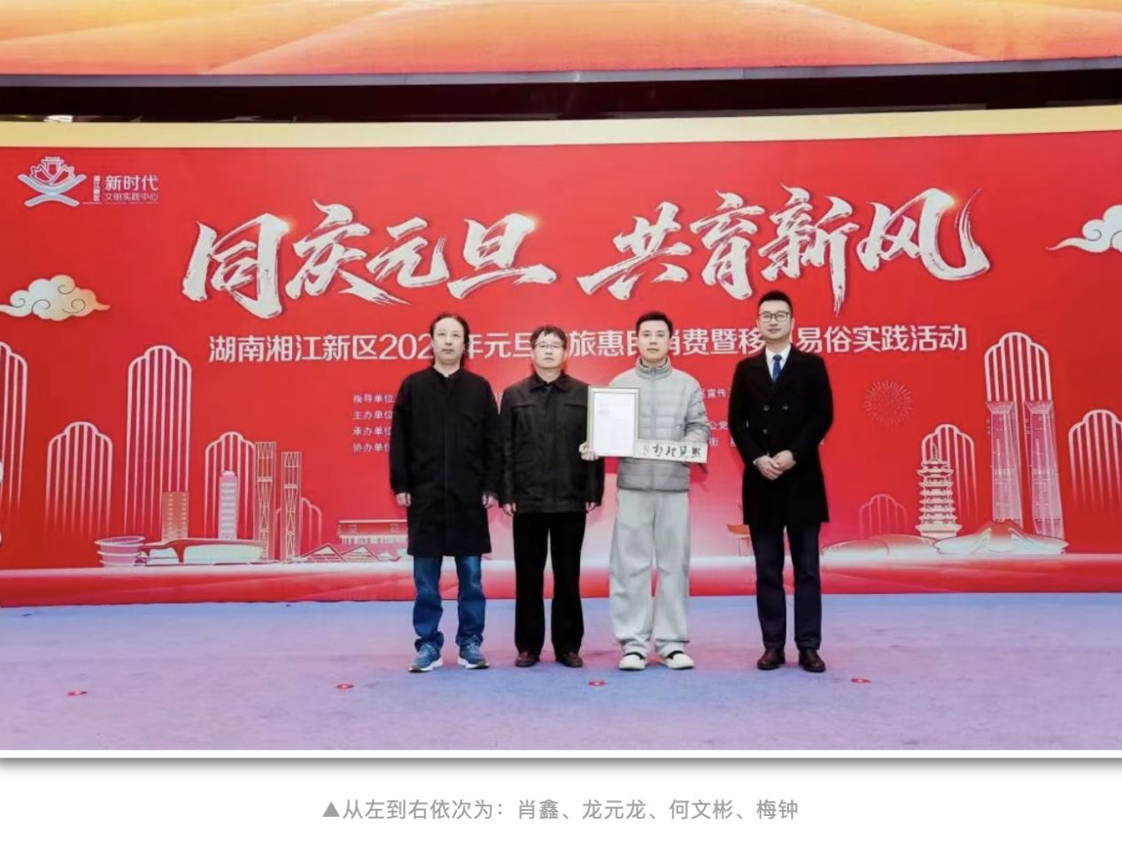 非遗传承·青春接力 在备受瞩目的“非遗传承·青春接力”仪式上,五菱汽车作为产业赋能的关键一环,与百年非遗品牌“百年德园”及青年创业者代表完成了一场意义深远的合作传递。 四位代表并肩而立: 肖鑫院长——湖南省政府特约研究员、省设计艺术家协会文创专委会主任、湘江新区文联副主席、区文化创意和旅游产业协会会长、文创研究院院长、大学生创业导师,代表着智慧与指引; 龙元龙先生——百年德园非遗技艺第五代传承人,承载着历史的厚度; 梅钟先生——五菱湖南湘骏总经理,握着产业创新的钥匙; 何文彬同学——本次非遗创新实践的青年创业代表;