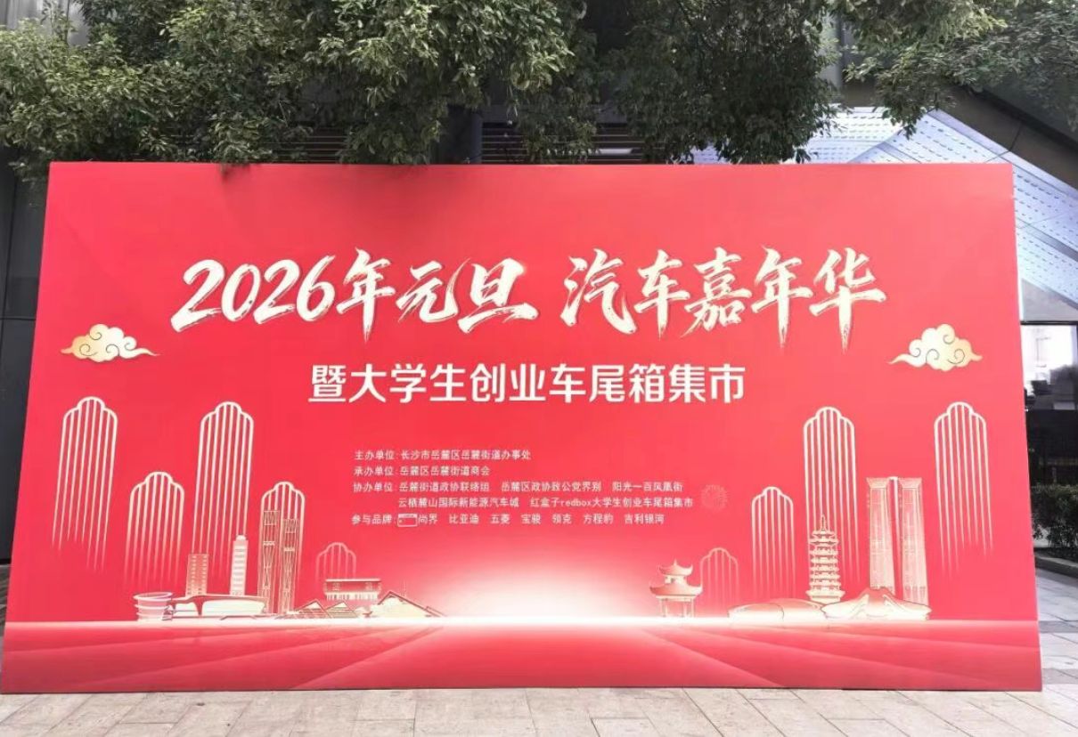 一元复始,万象更新。2025年12月31日,湖南湘江新区“同庆元旦 共育新风”2026年汽车嘉年华暨大学生创业车尾箱集市活动盛大开启!