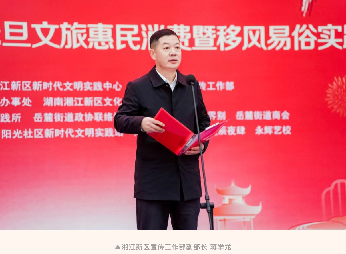 活动由湘江新区主办,岳麓街道商会承办,分为"艺韵悦动 华章共赏"与"新风共践 德润心田"两个阶段,通过文艺展演、文明表彰、非遗传承、集市开市等形式,生动展现了新区在推动文化惠民、倡导文明新风、支持青年创业等方面的创新实践。
