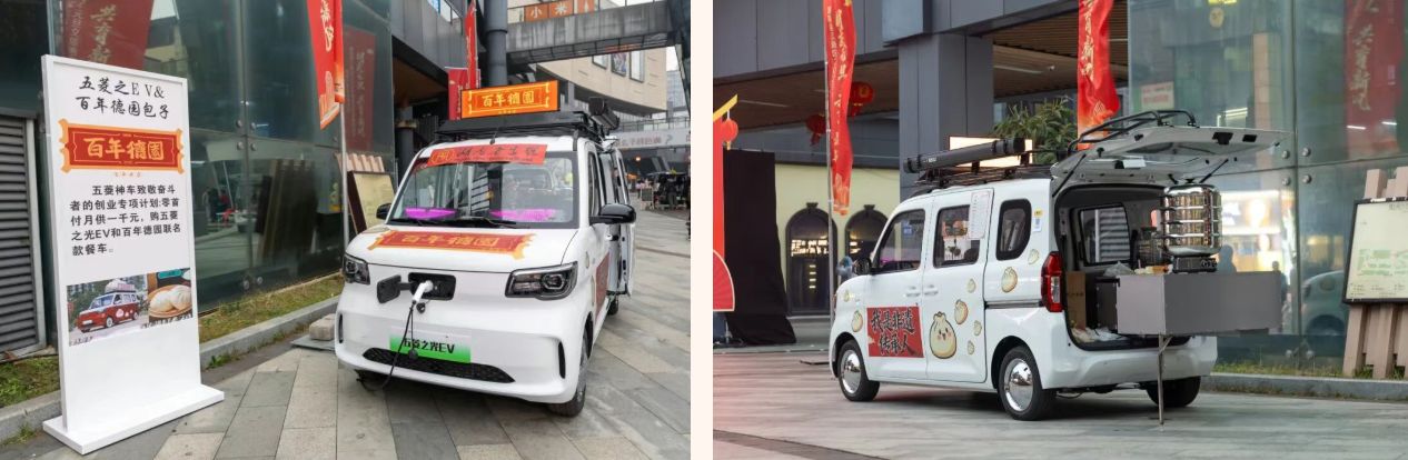 美食类 五菱EV&百年德园包子 五菱神车致敬奋斗者的创业专项计划: 零首付月供一千元,购五菱之光EV和百年德园联名款餐车。 赠送万元礼包: ①壹万创业基金(基金可以在平台兑换壹万元的商品德园包子) ②免费获得湖南老字号的商标授权,和百年德园品牌包子壹年的销售权 ③做中华非遗的传承人&其他品牌的销售权…… ④红盒子车尾箱大学生创业集市停车费免租壹年。 先用租铺和搞装修的预算,变成属于自己产权的:移动商铺!降低风险、降低试错成本,低成本创业夯实基础,从一到百模式探索市场,项目成功了就举一反三或者开实体店,项目失败了就切换主题重新再来,至少还有台车继续支持…… 我们要有高科技,但也要有烟火气!