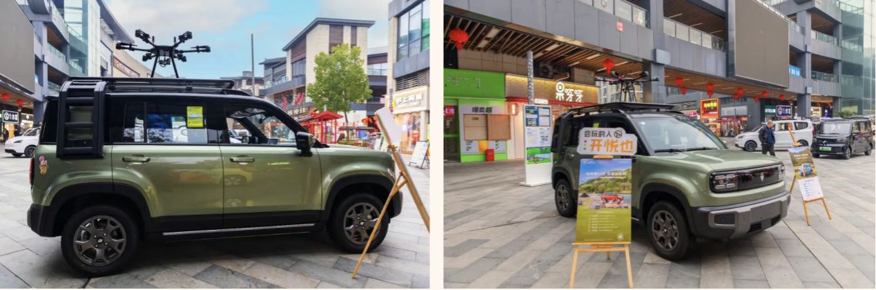 现场直击: 五菱和宝骏创业车,凭什么成为集市“流量担当”? “这不像一辆车,更像一个会移动的网红店。” 一位在现场排队买德园包子的市民这样感叹。 在阳光100凤凰街的核心区域,五菱和宝骏新能源汽车以其灵活的改装形态,成为了本次大学生创业车尾箱集市的“高光载体”: 宝骏&无人机 小坦克&无人机,是酷飒风+科技风。 宝骏是皮实的“小坦克”,即酷飒又可可爱爱!而湖南省地质院遥感所不仅仅带来了无人机培训,还带来了未来用无人机可以创造出的更多的科技领域与创业的岗位。