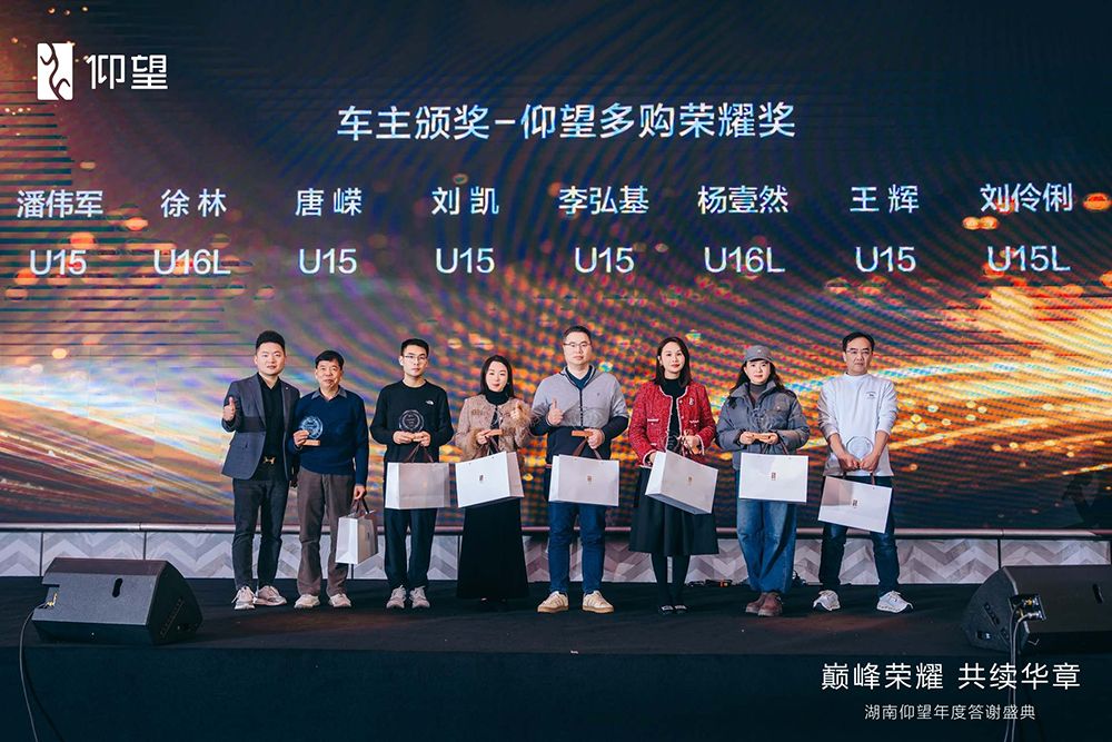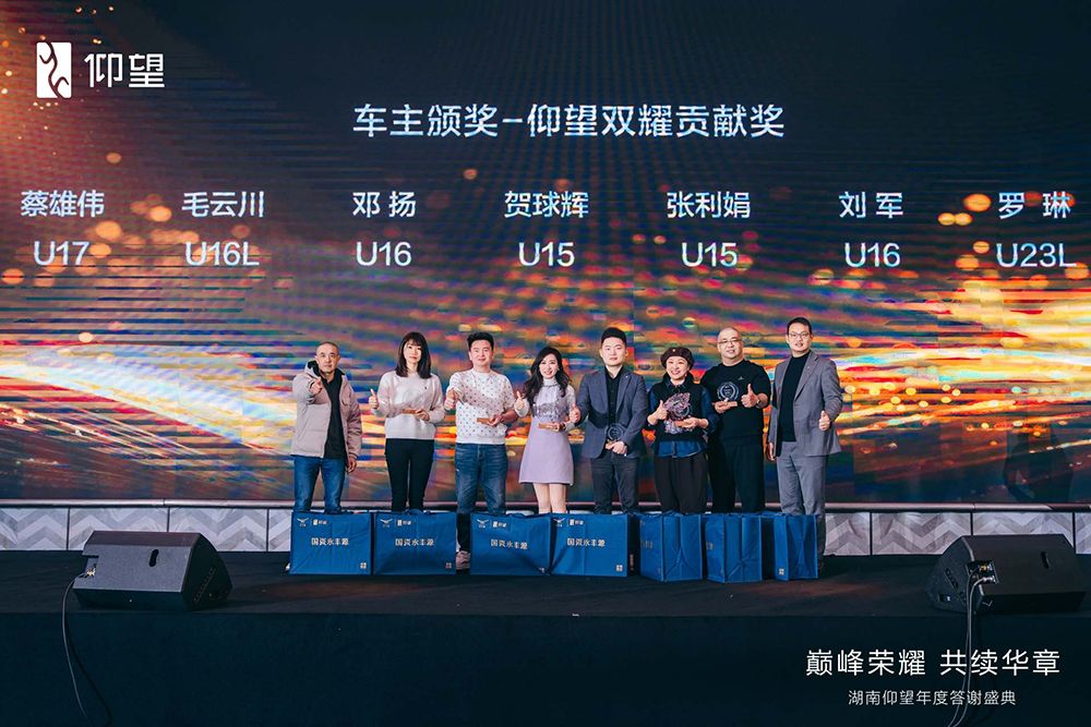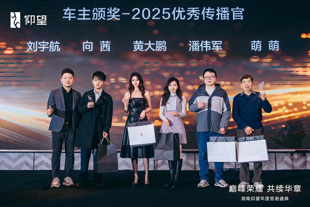 当晚最令人动容的环节莫过于多项荣誉的颁发。“2025优秀传播官”奖项表彰了那些积极分享、乐于传递品牌美好的车主;“多购荣耀奖”与 “双耀贡献奖”,则是对选择多台仰望车辆、与品牌深度结缘的家人们的特别致敬。当刘宇航、潘伟军、蔡雄伟、贺球辉、张利娟、罗琳等获奖车主的名字被念响时,掌声与欢呼声此起彼伏。他们手持奖杯与礼品,脸上的笑容格外灿烂。特别设置的“爱心车主代表颁奖”环节,则彰显了仰望车主群体热心公益、回馈社会的正能量,王明春、文炳军等车主代表的善举赢得了全场最崇高的敬意。